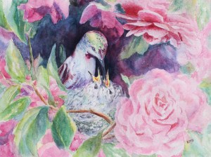 McLaren, EG, Cradled By Camelias, New Kids In Town, 16×20, watercolour ssf